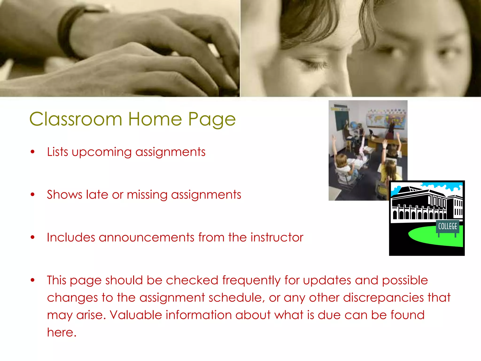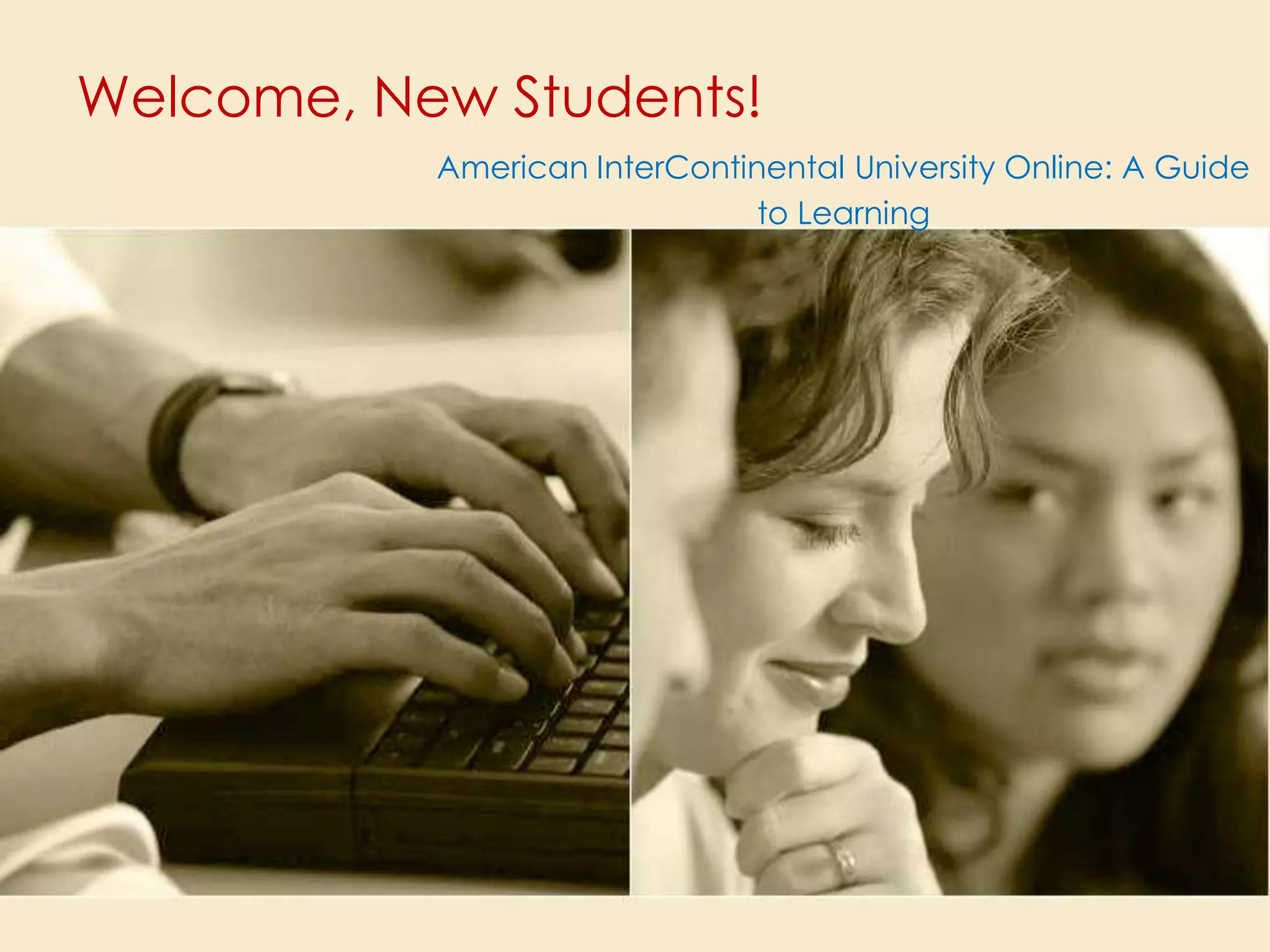 This document provides new students with an overview of the online learning experience at American InterContinental University, outlining the various resources and tools available through the classroom homepage, library, learning center, and student services. Key features of the classroom homepage include assignment schedules, announcements, course materials, discussion boards, and originality verification. Students are also introduced to resources for financial aid, career services, communication tools, and subject-specific research databases.