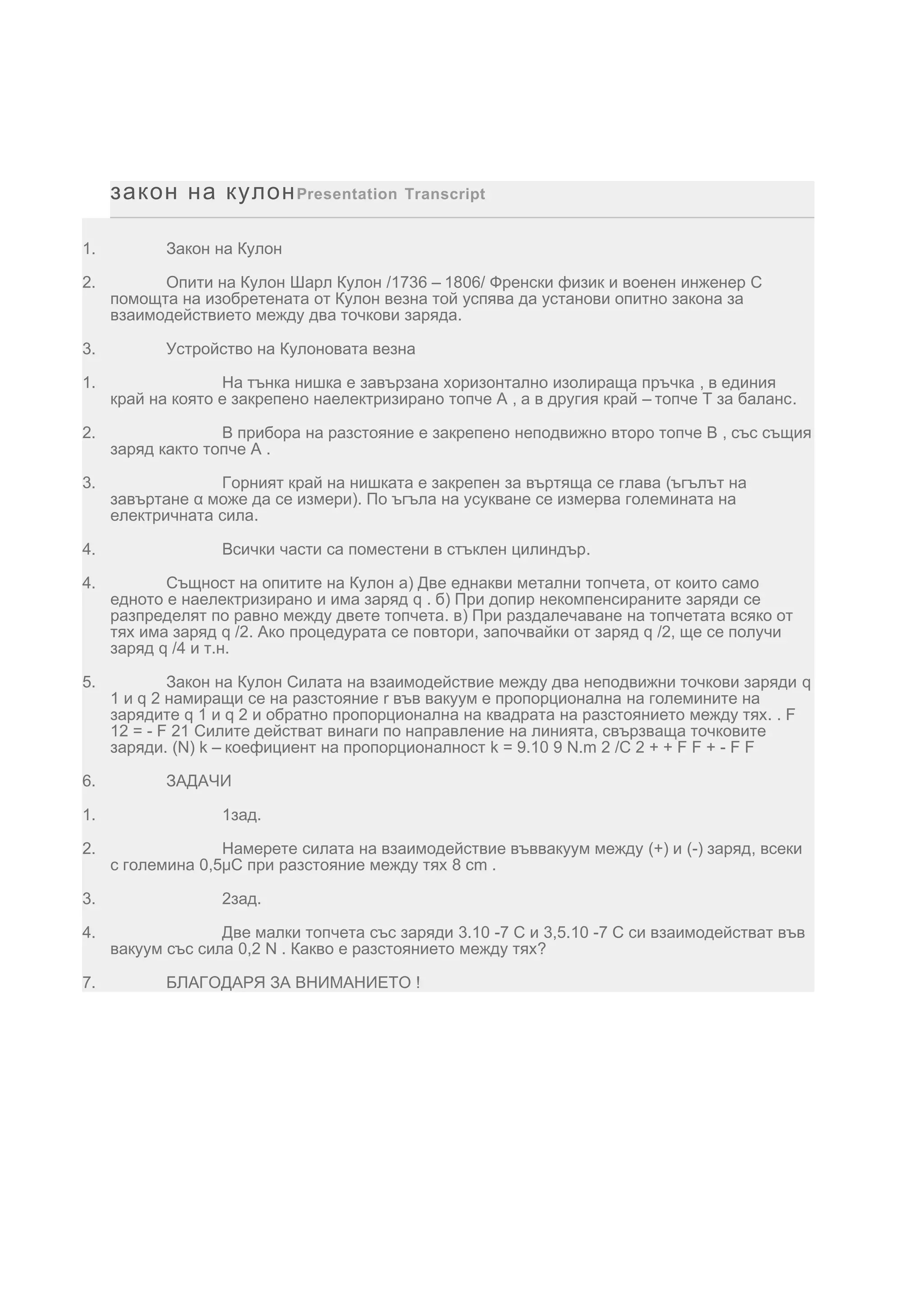 4. ) ,Същност на опитите на Кулон а Две еднакви метални топчета от които само