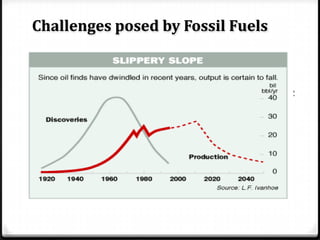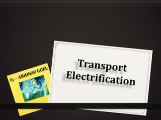 The document discusses the challenges associated with fossil fuels, including environmental degradation, rising oil prices, and the need for electric vehicles (EVs) to reduce greenhouse gas emissions and oil dependence. It outlines various types of electric and hybrid vehicles, their advantages, and the infrastructure required for electric transport systems in India. The conclusion emphasizes the importance of electrification for energy security, emission reductions, and the need for ongoing research to address the associated challenges.
