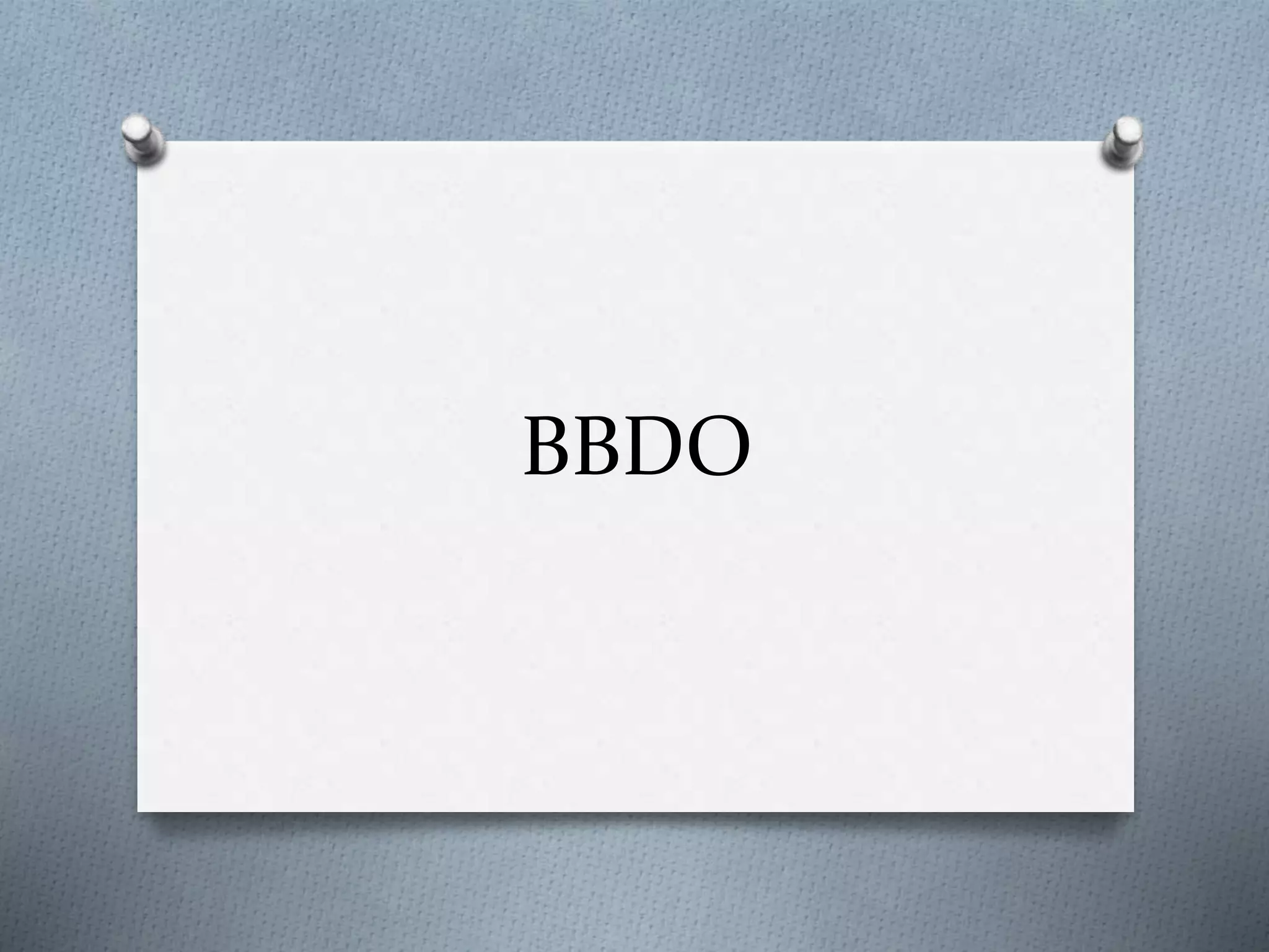 BBDO began in 1891 as the Batten Company, a one-room advertising agency in New York. It merged with Barton, Durstine & Osborn in 1928 to form BBDO, which is now one of the largest global advertising agency networks with over 15,000 employees worldwide. The document discusses BBDO's history, operating model, products, market position, competitors, and analyzes a "Smart - Unexpected Test Drive" video campaign from BBDO Russia aimed at converting drivers of large SUVs in Moscow to the smaller Smart car.