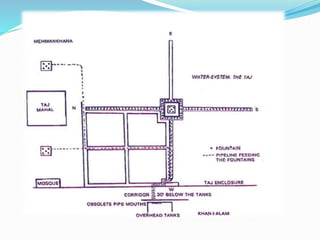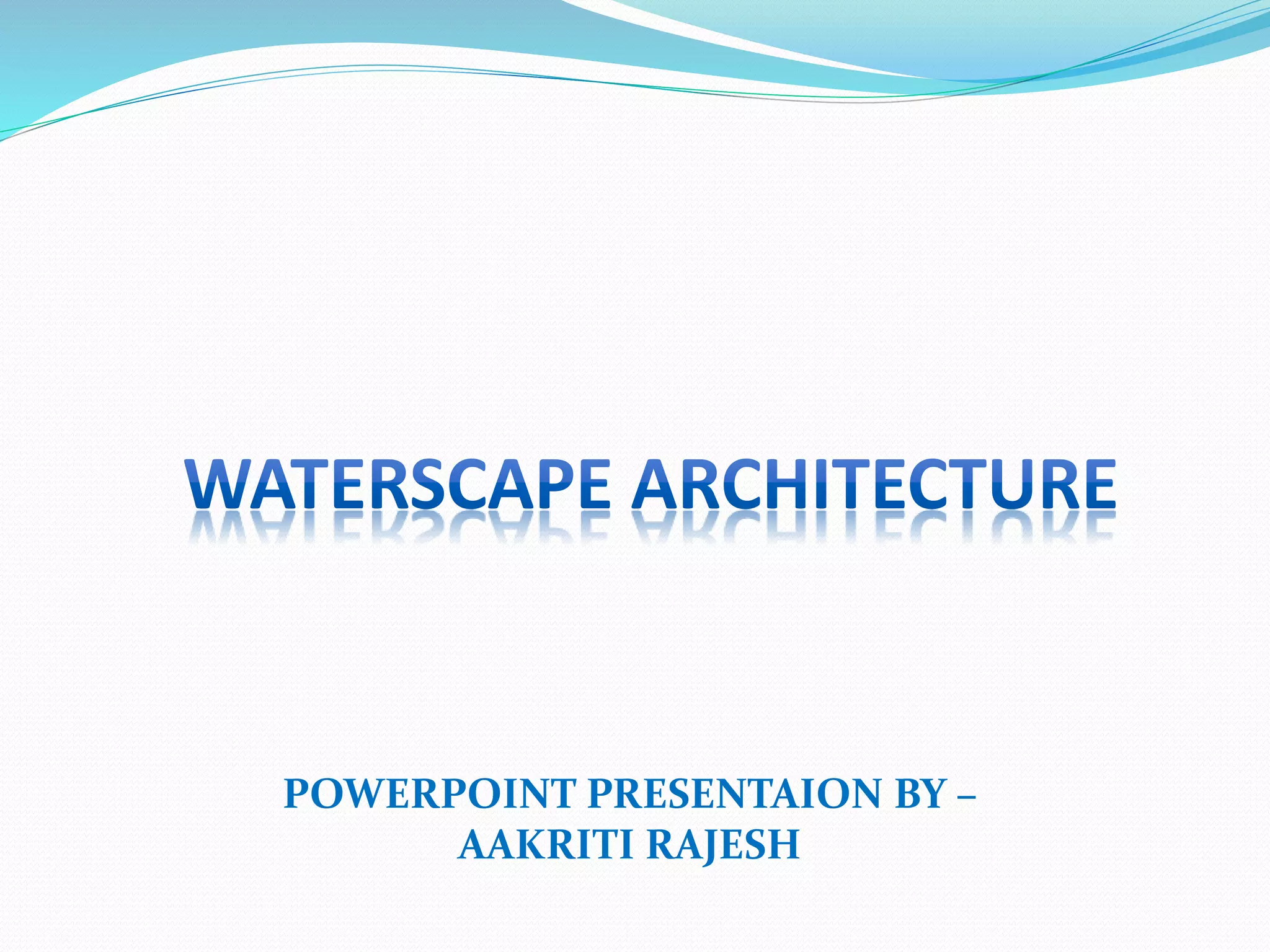The presentation discusses the history and uses of waterscapes in built environments. Waterscapes, which include fountains, cascades, and ponds, have been used for centuries as artistic and recreational features that enhance surroundings. Specific examples highlighted include Mughal gardens in Kashmir and India, which incorporated elaborate water features, as well as fountains from ancient Rome, France, and Hong Kong. Waterscapes provide aesthetic, acoustic, and environmental benefits and can be focal points that attract people. A variety of waterscape designs are shown, along with their ability to create different visual and sound effects.