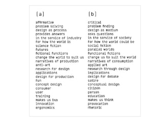This document provides instructions for students to prepare and present mini critical design projects related to sleep and its place in society. Students are asked to focus on 1-2 projects, experimenting with critical futures ideas and ways of making projects. They should create 2-4 objects/elements for each project and explain them in a digital presentation or printout, including videos or files. The presentations will be assessed based on the objects created, the presentation, and the content/reasoning. Students are to upload their presentations and any documentation into a shared folder by a certain date.