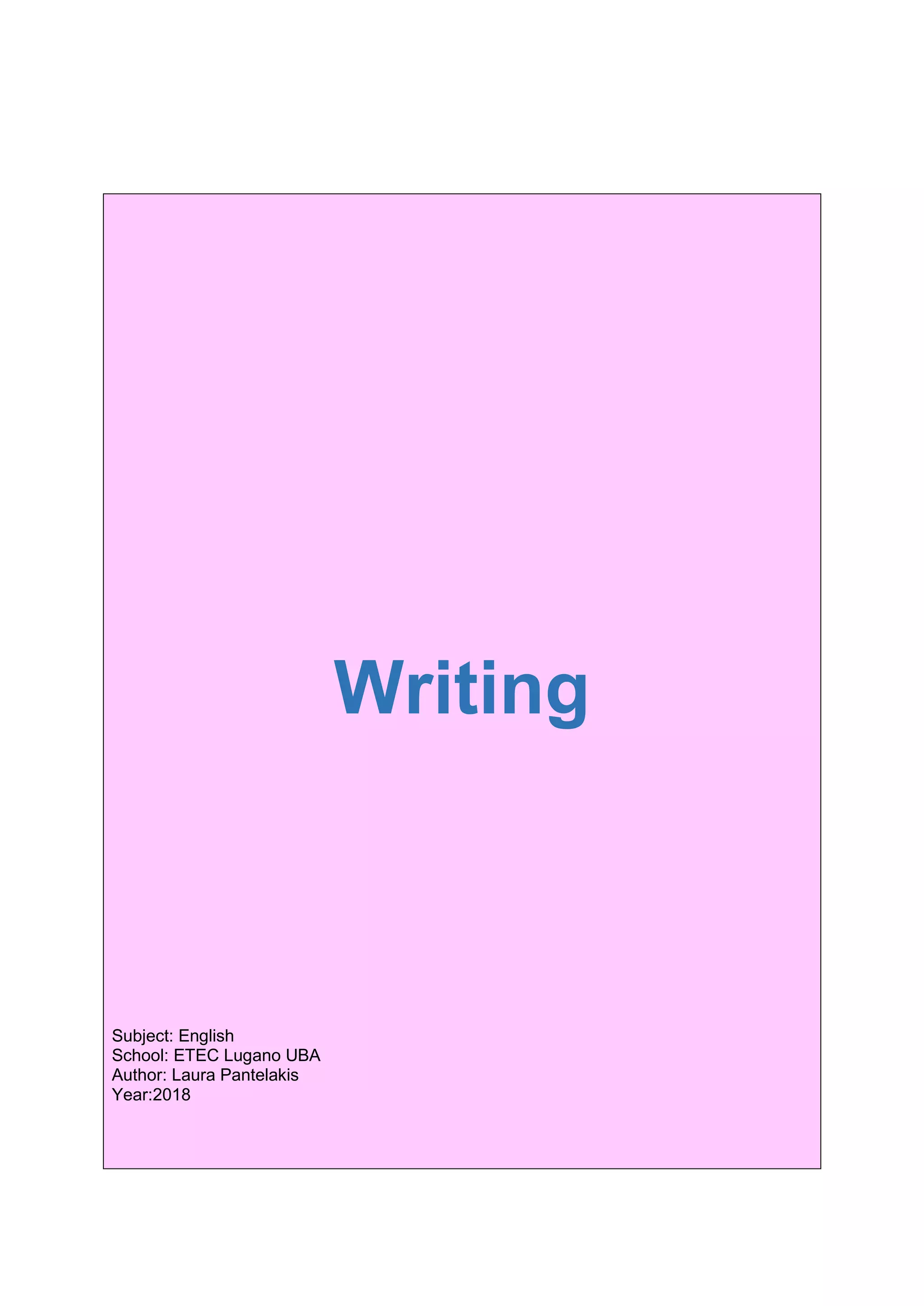This document discusses the structure of writing, using recipes as an example. It explains that all writing should have an introduction, development, and conclusion. For recipes specifically, the sections are ingredients, method, and tips. The ingredients section lists the items and amounts. The method uses imperative verbs to outline the steps. The tips provide alternatives. This same three-part structure can be condensed into a single paragraph to describe a favorite food.