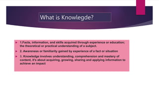 This document provides an overview of the information processing model of learning and memory. It explains that the model involves three main stages: encoding, where information is received and processed; storage, where information is kept in either short-term or long-term memory; and retrieval, where stored information is recalled. The document also discusses Atkinson and Shiffrin's modal, which proposed three memory stores: sensory register, short-term memory, and long-term memory. It notes that the information processing model offers advantages for improving retention and retrieval but has limitations regarding computer versus human processing capacity.
