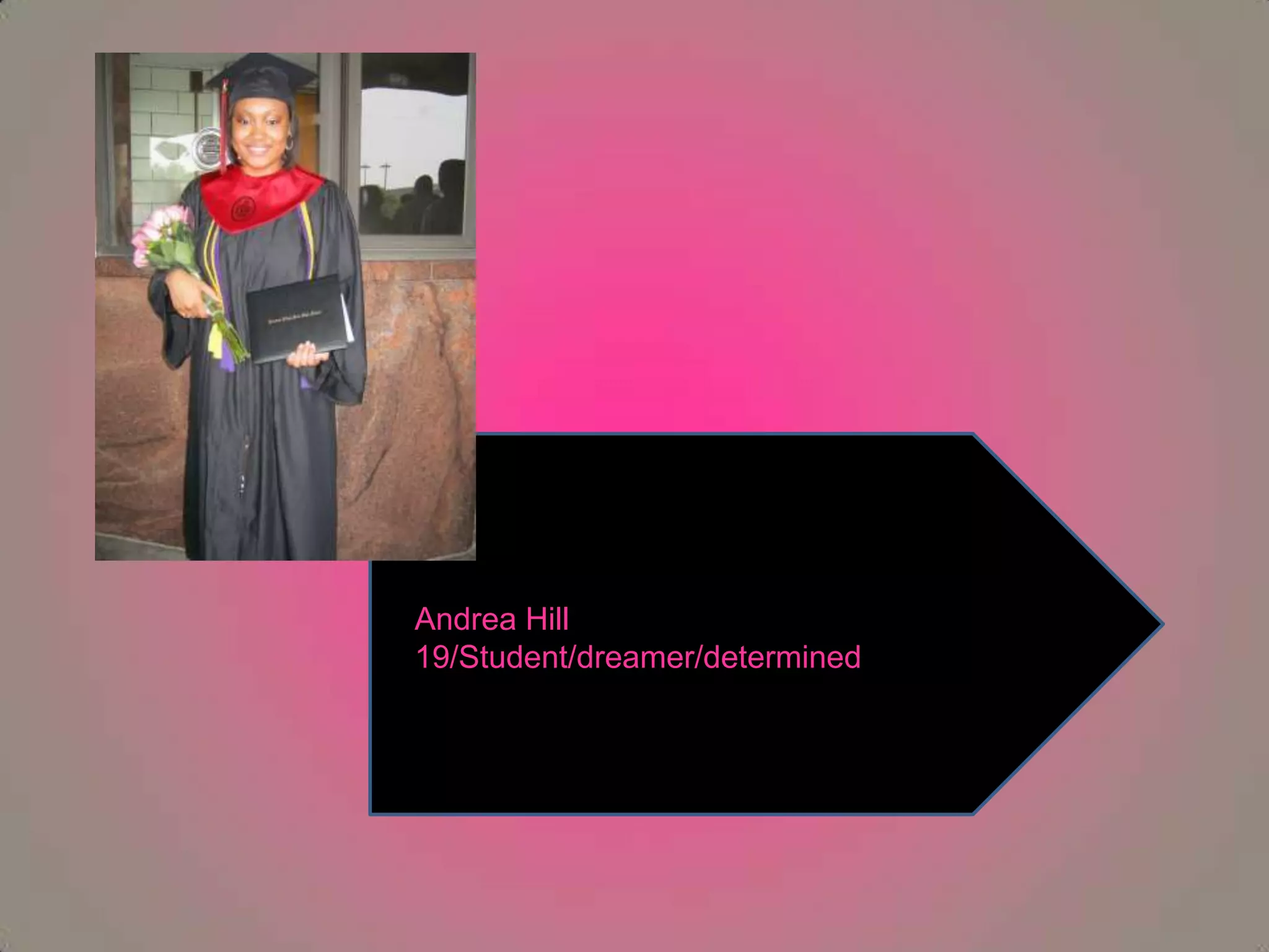 Andrea Hill is a 19-year-old student from Kentucky majoring in Elementary Education who loves kids and dreams of becoming a school principal. She is determined to accomplish her goals, as shown by receiving scholarships like the William C. Parker Scholarship and Whitney M. Young Scholar. Currently, she works as a surveyor at the University of Kentucky Survey Research Center to gain experience and save for her next steps, which include graduate school for administration.