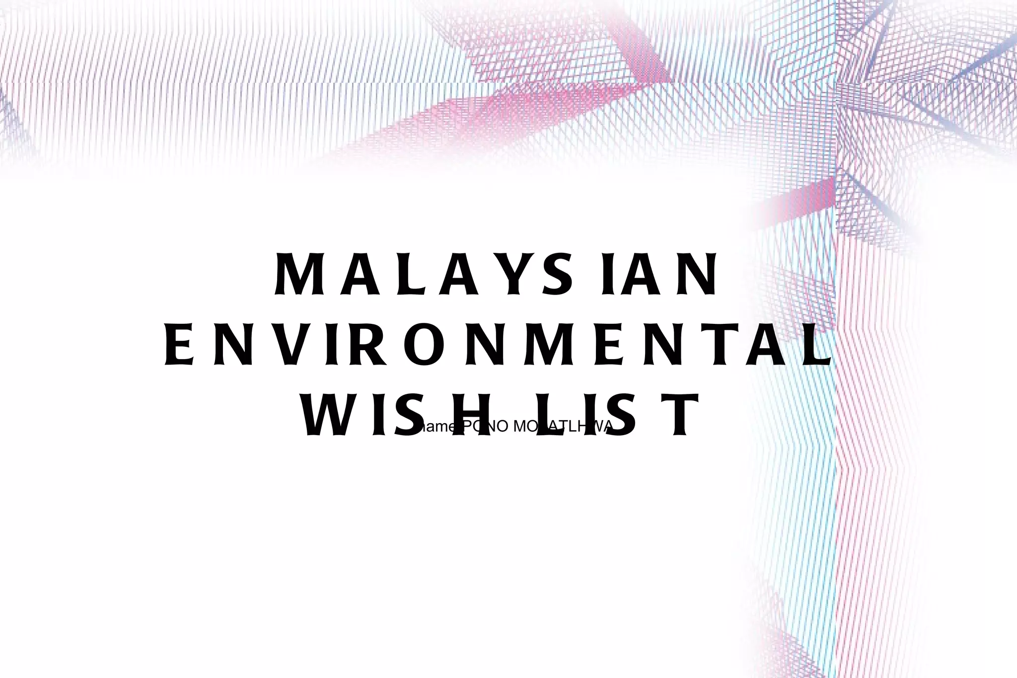 The document proposes an installation project called the "Malaysian Environmental Wish List" that allows users to write or draw environmental wishes on a digital whiteboard. Whatever is written would then be projected onto the Malaysian parliament building to get the attention of legislators and advocate for better environmental protection. The project aims to give the public a platform to voice environmental concerns and wishes in a non-destructive way through digital graffiti projection.