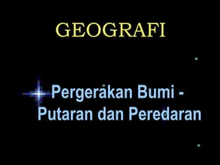 Bumi berputar pada porosnya sendiri secara timur ke barat mengambil masa 24 jam untuk satu putaran, menyebabkan berlakunya siang dan malam. Bumi juga beredar mengelilingi matahari mengambil masa 3651/4 hari untuk satu tahun, menyebabkan berlakunya musim.