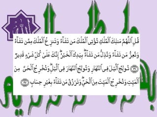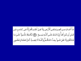Dokumen ini membahas tentang kepercayaan kepada qadha' dan qadar, yang merupakan salah satu rukun iman dalam Islam, yang menegaskan bahawa segala sesuatu yang terjadi di alam ini adalah ketentuan dan kehendak Allah. Ia juga menjelaskan perbedaan antara qadha' dan qadar mubram serta muallaq, di mana yang pertama adalah ketetapan yang tidak dapat diubah, sementara yang kedua berkaitan dengan usaha dan ikhtiar manusia. Konsep ini mengajak umat Islam untuk bersyukur atas kebaikan dan bersabar dalam menghadapi kesulitan, serta memahami bahwa setiap perkara ada hikmahnya dari Allah.