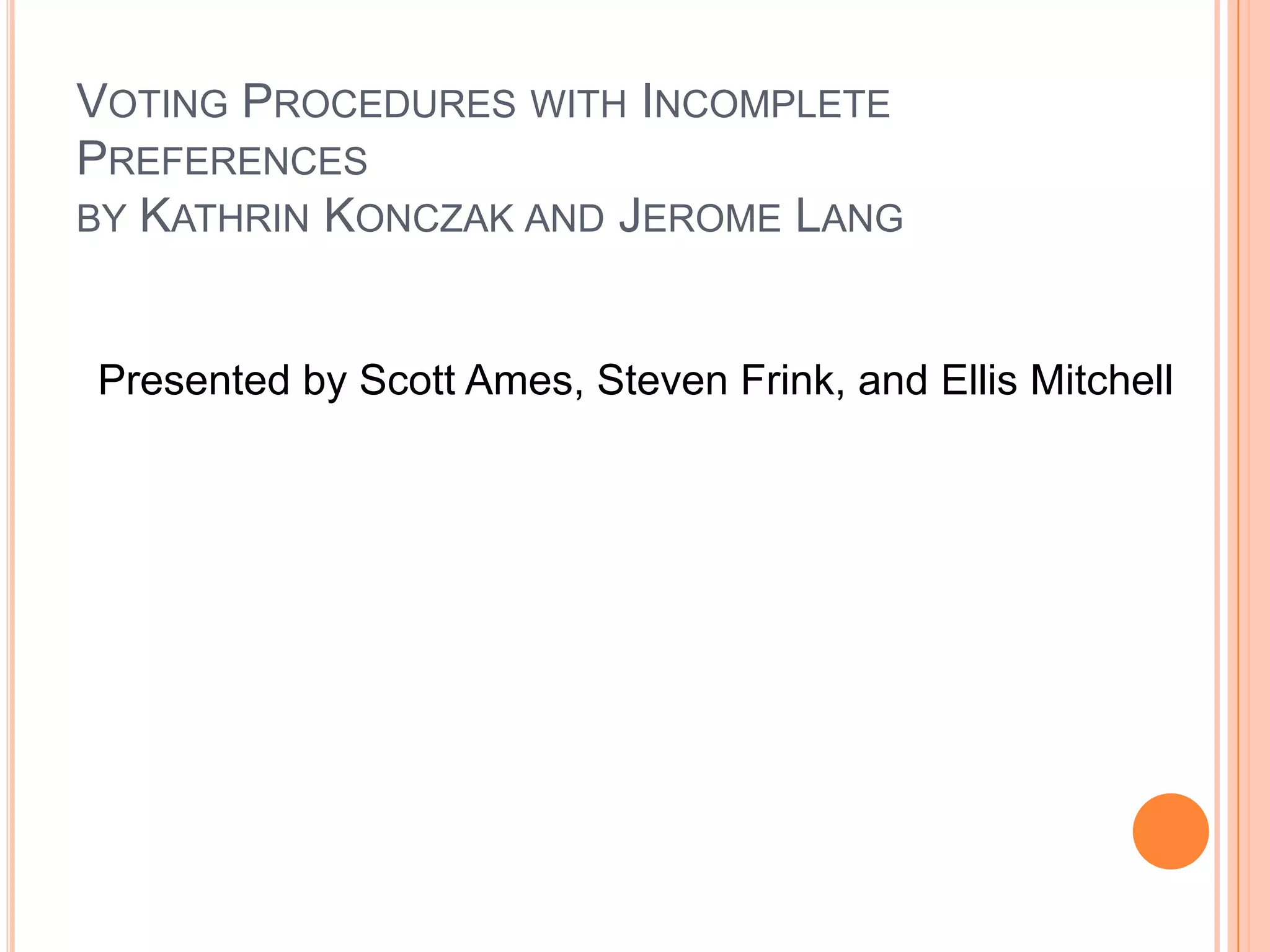 This document summarizes research on voting procedures with incomplete voter preferences. It introduces the concepts of possible and necessary winners given incomplete information about voter preferences. It shows that for positional scoring procedures and the Condorcet rule, possible and necessary winners can be computed efficiently in polynomial time by looking at minimum and maximum ranks candidates could achieve. The document also discusses manipulation and elicitation in this setting.