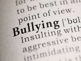 Violence can take many forms including physical, sexual, and psychological harm. It includes behaviors like assault, battery, coercion, harassment, and threats. Violence against children in schools is considered a serious offense. Bullying is a specific type of violence defined as willful and aggressive behavior directed at a vulnerable victim, and it can seriously harm children's mental, emotional, and academic development. Cyberbullying is bullying using electronic means like social media and texts. Children who are bullied often show rebellious behaviors and have worse psychiatric symptoms. Repeated bullying can severely damage a child's ability to trust others.