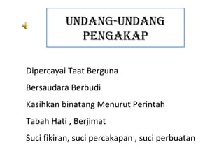 Lagu Pengakap Malaysia menekankan nilai-nilai seperti kesetiaan, kebersamaan, dan pengabdian kepada negara. Ia mengajak generasi muda untuk menjadi individu yang berguna dan melatih sikap positif. Melalui liriknya, lagu ini merayakan semangat pengakap dan kebanggaan sebagai anggota pengakap.