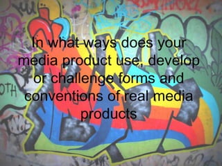 The document discusses three texts - a music video website, music video, and digipak - created for rapper Heavy D. All three texts reflect Heavy D's bright, colorful image through their use of vivid colors and styles. In the music video, Heavy D wears different colorful outfits to showcase his cool rap persona. Bold purple and yellow fonts and imagery are used consistently across the three texts to match Heavy D's clothing and the vibrancy of the song. The music video features limited props but added special effects to enhance the fun, exciting feel. It was aimed at and received positive responses from young adults and teenagers attracted by its humor and bright colors with a nostalgic 90s influence.