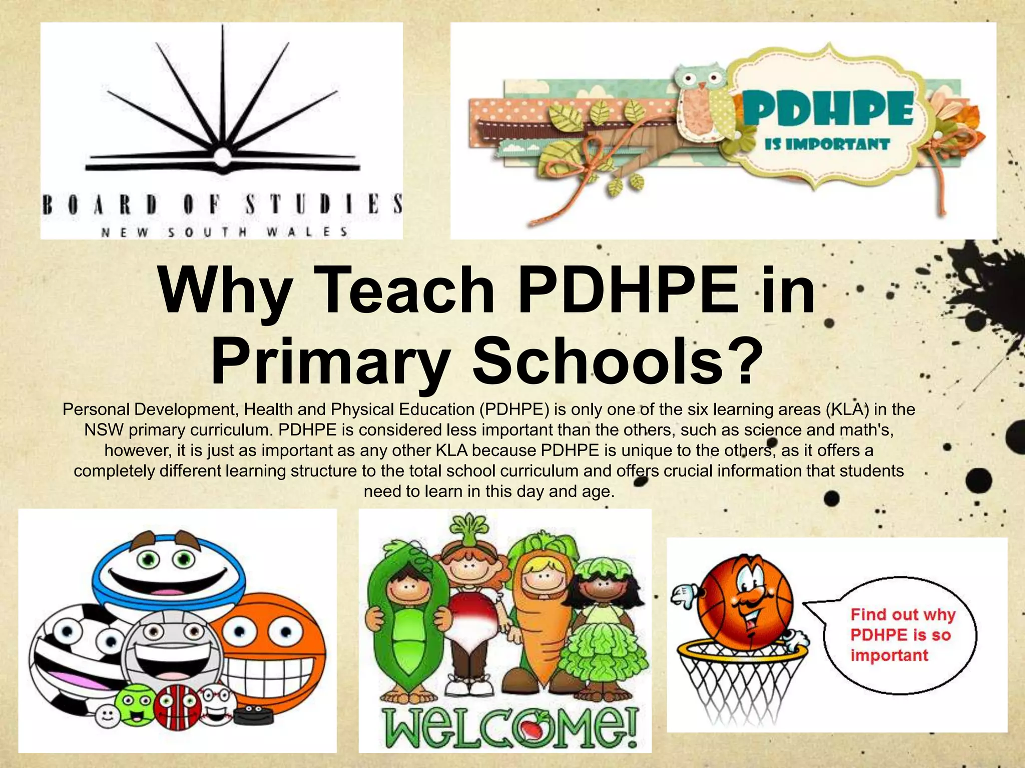 PDHPE teaches students important life skills like healthy eating, physical activity, safety, and interpersonal relationships. It is as important as core subjects like math and science. PDHPE promotes physical and mental well-being by encouraging exercise, nutrition education, safety skills, and positive social development. While some see it as less important, PDHPE provides crucial benefits to student health, development, and quality of life.