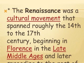 The Renaissance began in Italy in the 14th century and later spread to England, influencing literature, philosophy, art and other aspects of intellectual inquiry. Humanist scholars searched for realism and emotion in art. The creation of the printing press by Johannes Gutenberg encouraged the spread of Renaissance ideas to a wider audience. In England, playwrights like William Shakespeare and Christopher Marlowe composed works representing English life and history, helping to establish the English Renaissance. Shakespeare's plays and poems remain some of the most influential works of the period.