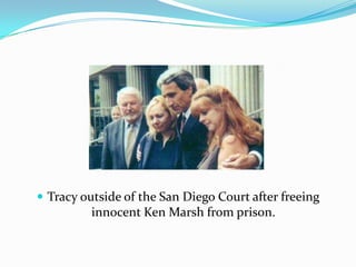 Tracy has gained early financial support from more than 5 labor unions and supports local union workers. Tracy has worked to free innocent people from prison and has received awards for championing innocent people. Tracy has also participated in health care forums with members of Congress and received support in her campaign from state assembly members and unions for her candidacy for Congress.