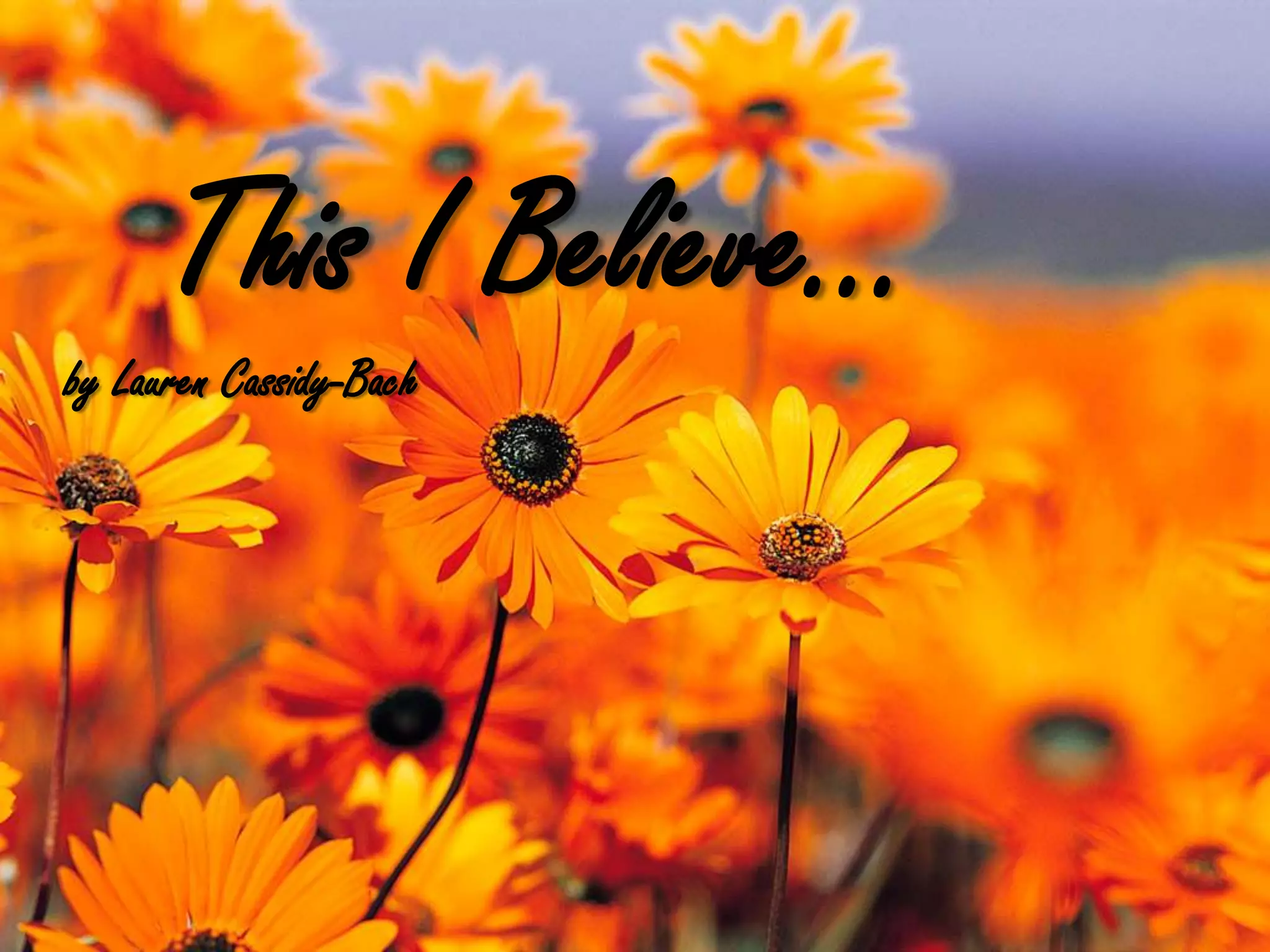 This document outlines several beliefs held by Lauren Cassidy-Bach, including believing in the Golden Rule of treating others as you wish to be treated, not judging people by their appearance, that love is important but other things are also needed, that everyone has something to teach others, the importance of knowing right from wrong, that self-confidence is key to success, and that racism stems from ignorance.