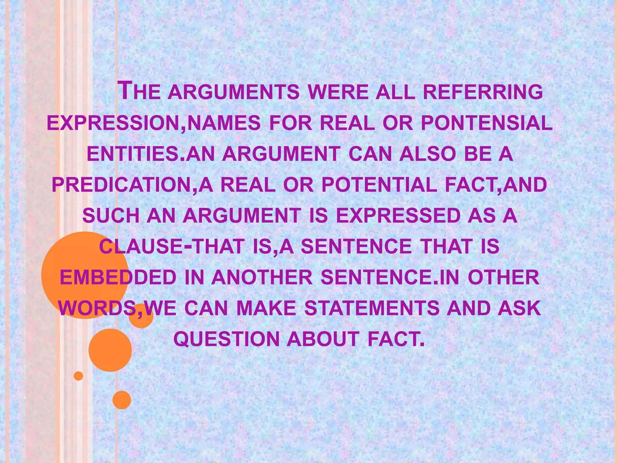 The document discusses different types of clauses that can be used in sentences, including full clauses, reduced clauses, and non-factual clauses. Full clauses have a subject pronoun and can be modified fully by verbs. Reduced clauses lack these characteristics. Non-factual clauses use modal verbs like "should" and can be ambiguous depending on whether they end in "s". The document also covers gerund clauses, verbal nouns, and syntactic ambiguity that can arise from coordination and modifiers.