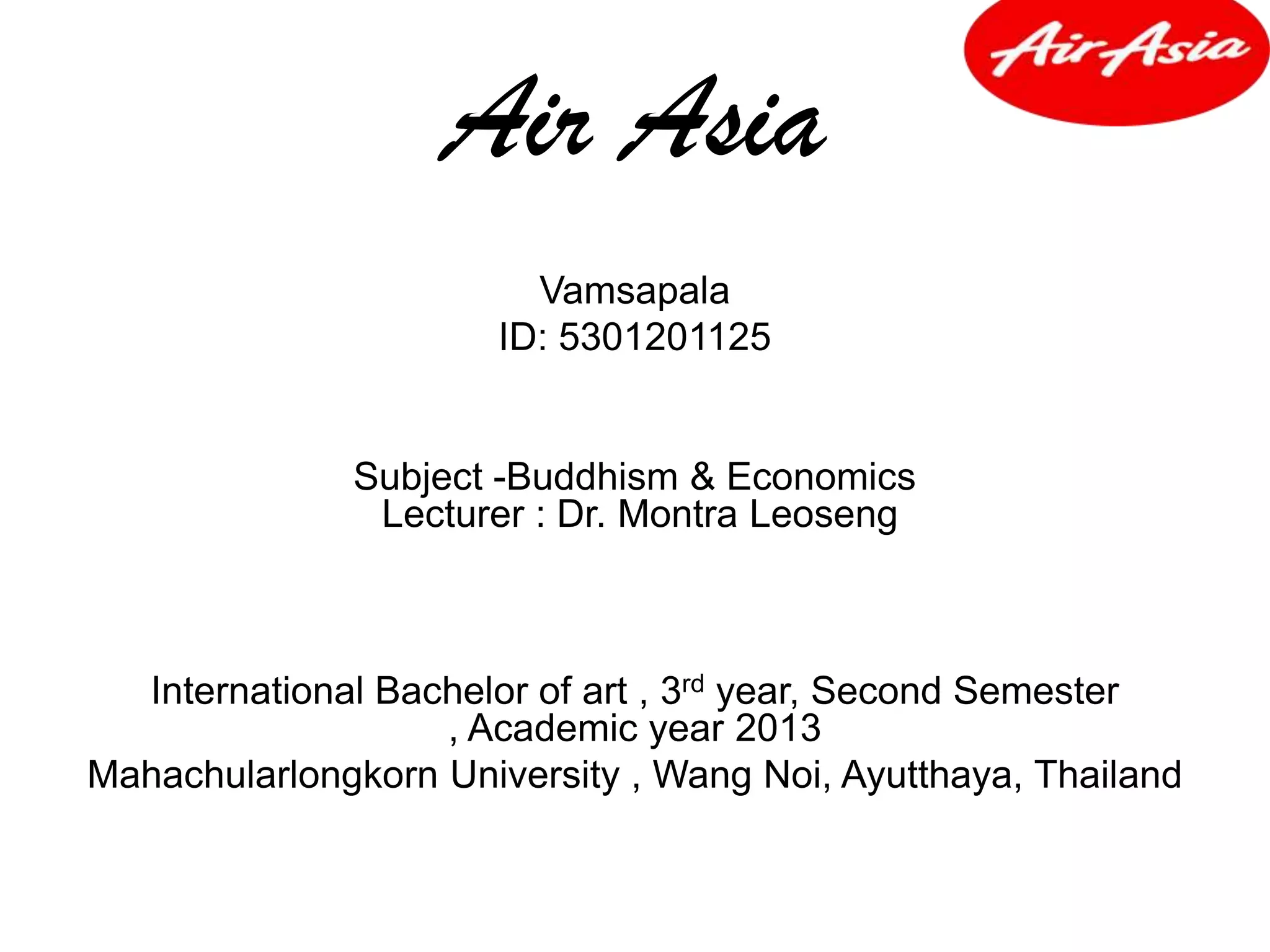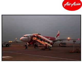This document provides information about Air Asia, a low-cost airline founded by Tony Fernandes. It discusses Air Asia's routes which span 25 countries and over 400 destinations in Asia. It also notes that Air Asia has been named the World's Best Low-Cost Airline. The document highlights that Air Asia aims to serve the billions of people in Asia who currently have poor connectivity and must pay high airfares, and that it keeps costs low to offer more affordable flights to customers.