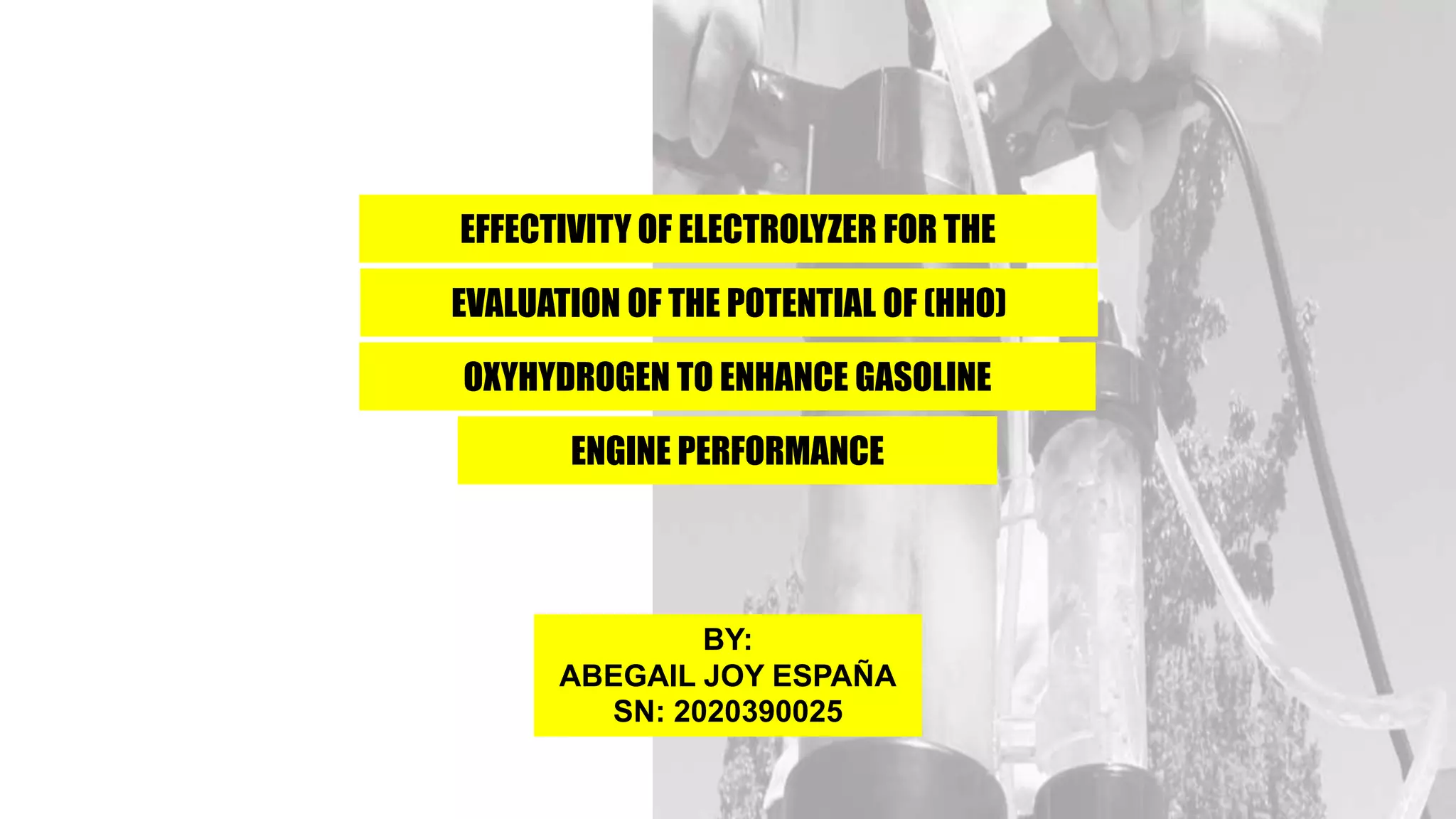 1) The problem of pollution from vehicle emissions and the goal of developing cleaner combustion engines. HHO gas produced from electrolysis of water is a potential fuel stabilizer.