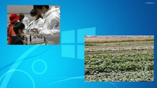 Radiation pollution can harm human health by increasing cancer risks. Units of measurement for radiation doses include the gray (Gy) and sievert (Sv), with background exposure averaging 2-3 mSv per year. While low doses have uncertain effects, high doses are known to increase cancer risks and are used in medical applications such as diagnosis, radiotherapy, and radiosterilization.