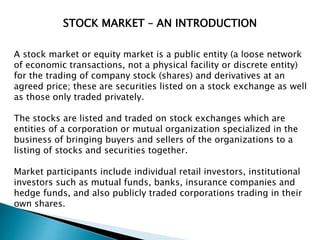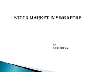 1) The Singapore Exchange (SGX) operates the stock market in Singapore, listing and trading stocks of over 700 companies with a total market capitalization of $650 billion.