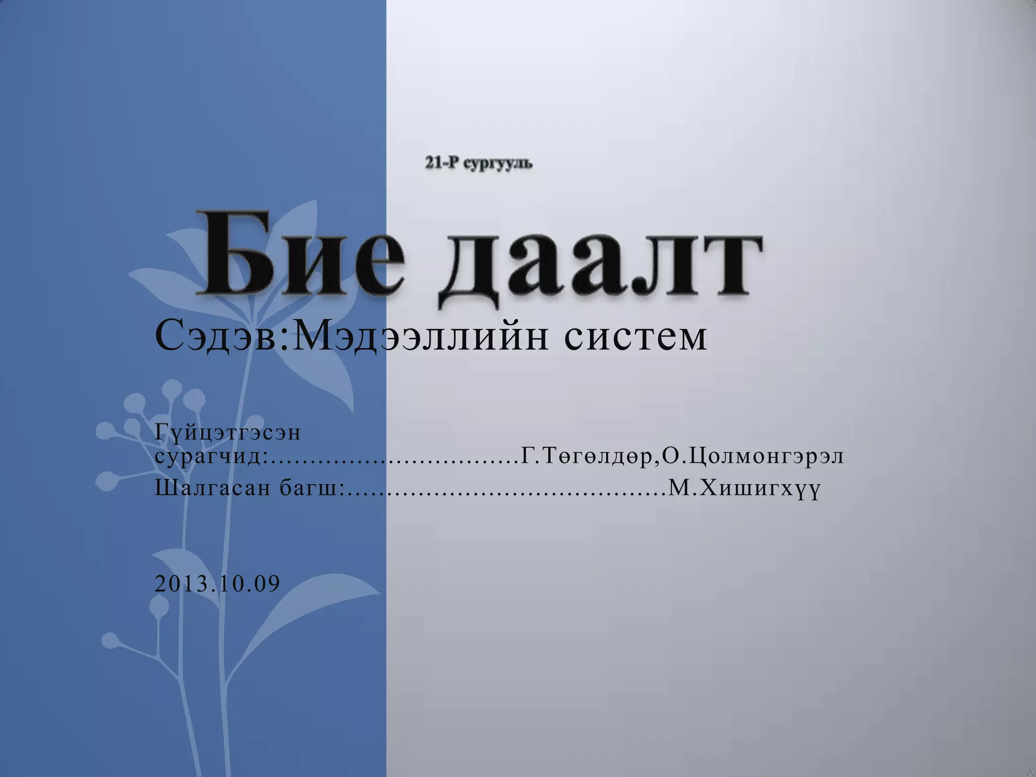 Одоо бидний хичээнгүйлэн бэлтгэсэн бие даалтыг маань сонирхон