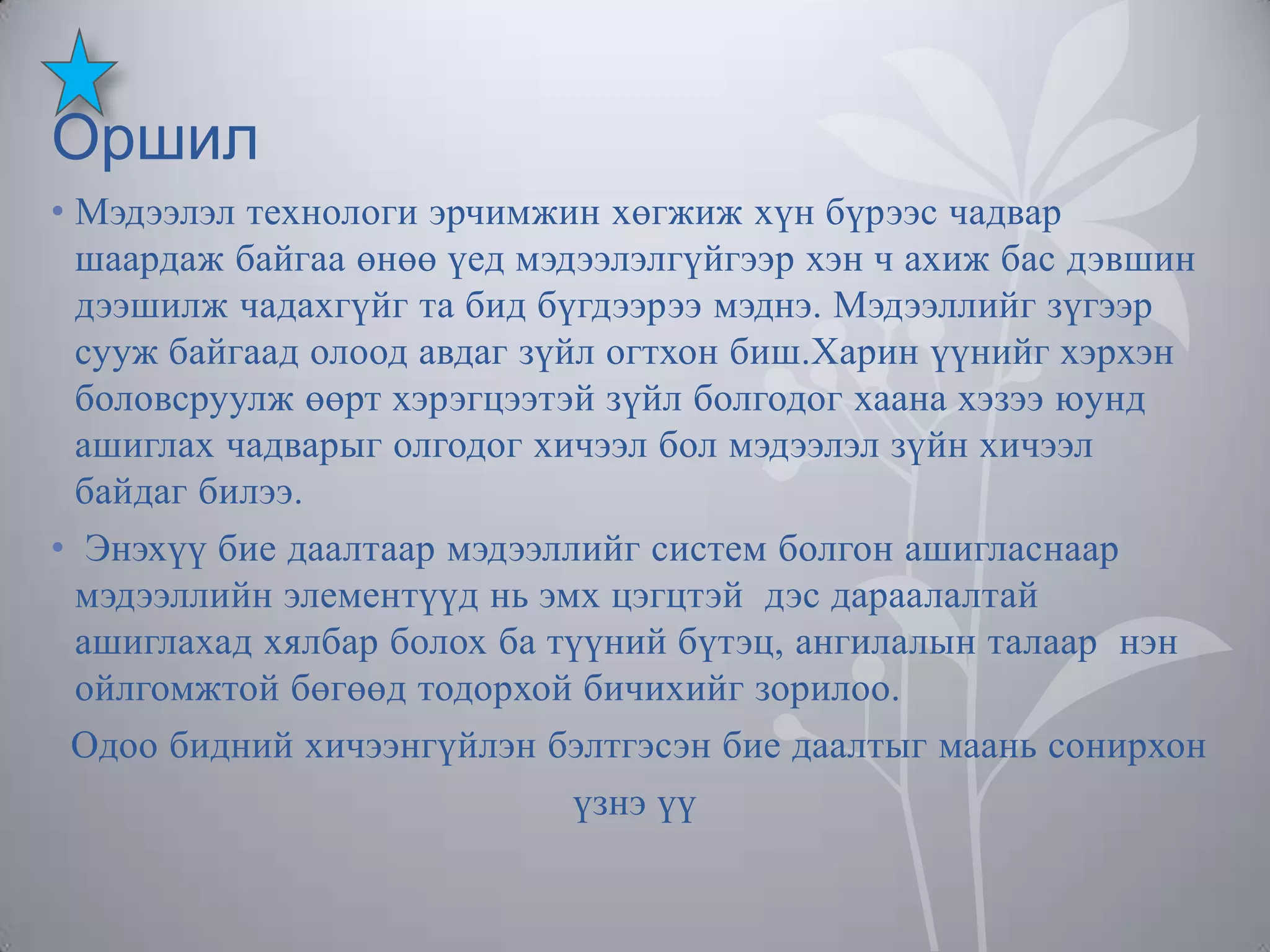мэдээллийн технологи 1 хичээлийн хөтөлбөр PPTX