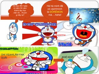 Tài liệu nói về kỷ niệm 50 năm thành lập học viện. Người viết đưa ra ý tưởng để tổ chức sự kiện với sự tham gia của nhiều người hâm mộ. Nội dung thể hiện sự hào hứng và vui vẻ về dịp đặc biệt này.