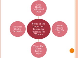 This document outlines various fundamental rights and government schemes that aim to promote and protect women's rights in India. It discusses constitutional provisions like articles 14-16, 21, 23, 39, 40, 42, and 51 that guarantee gender equality and prohibit discrimination. It also describes several key acts and laws passed over the years related to issues like dowry prohibition, equal pay, domestic violence, and more. Further, it summarizes various central and state government schemes for women's welfare focused on areas such as self-help groups, health, nutrition, skills training, microfinance, housing, and child support.