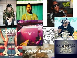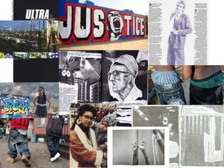 Hannah Sewell is researching and planning the design of a fanzine about hip hop music and fashion. She has created mood boards and flat plans to visualize the layout of the front cover and article pages. For the front cover, she wants to feature a black and white photo of a man with modern design elements incorporated through cropping and color. For the article pages, she plans to cut up her written piece and collage it with related images to fit within distinct borders on each page. Hannah has also explored different hip hop inspired fonts to use for the title and article text to achieve the style she wants for her fanzine.