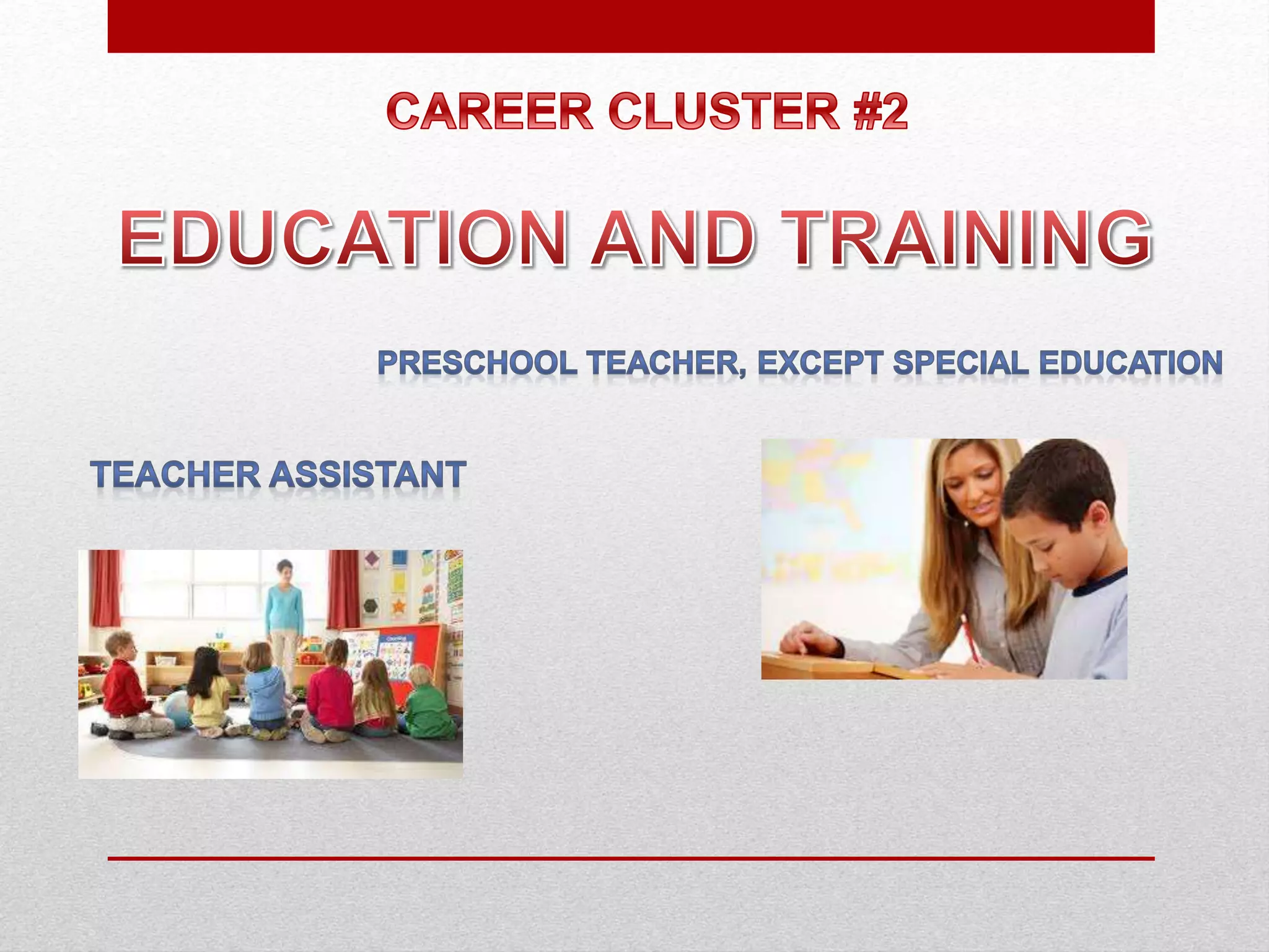 Preschool teachers instruct young children to promote social, physical, and intellectual growth for primary school. They teach basic skills, read to students, and provide a variety of learning
