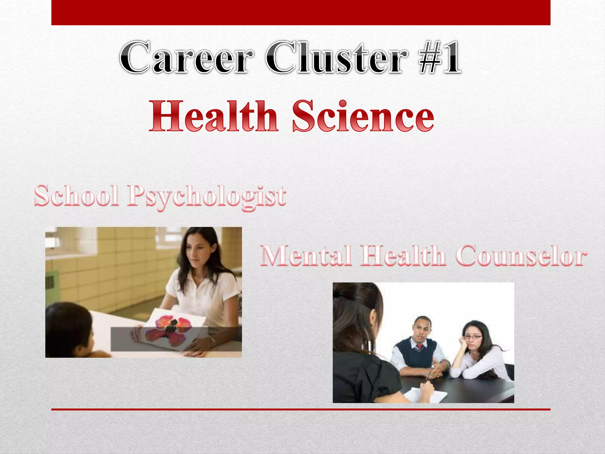 Mental health counselors counsel individuals and groups to promote mental health and help with issues like addiction, family problems, and stress. They maintain confidential treatment records and help clients develop insight through counseling. A master's or bachelor's degree is usually required.