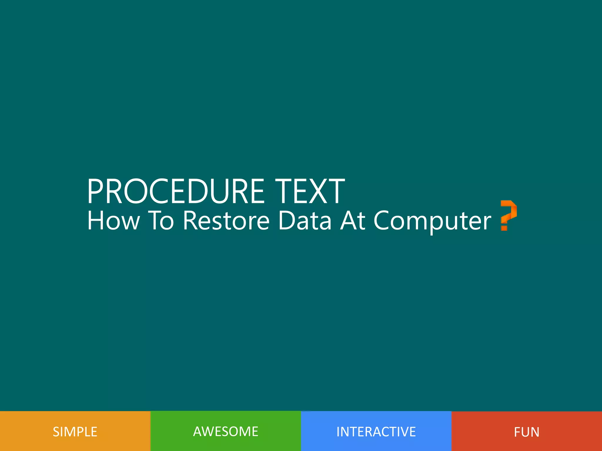 When you delete data from your computer, the files are not actually removed but are instead moved to the Recycle Bin. To restore deleted files, double click the Recycle Bin icon to open the window. Select the files you want to restore with your right mouse button and choose the "Restore" option to put the files back in their original location. This simple process allows users to easily recover accidentally deleted files from their computer.