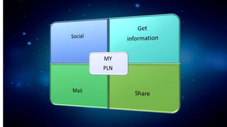 A personal learning network (PLN) is an informal learning network consisting of people from whom a learner interacts with and gains knowledge, according to Wikipedia. In a PLN, a person connects with others with the intent of learning from those connections. Social networking sites help the learner communicate globally to share and exchange ideas and knowledge, look for information, and share documents and presentations while also allowing email exchanges between peers and friends.