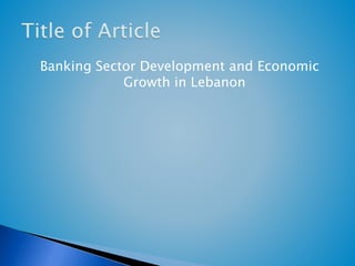 This document discusses the relationship between banking sector development and economic growth in Lebanon. It presents two hypotheses: 1) that banking sector development leads to economic growth (supply-leading relationship) and 2) that economic growth leads to banking sector development (demand-following relationship). The author tests these hypotheses using a Granger causality model and finds evidence that supports both relationships, indicating a feedback effect between banking sector growth and economic growth in Lebanon.
