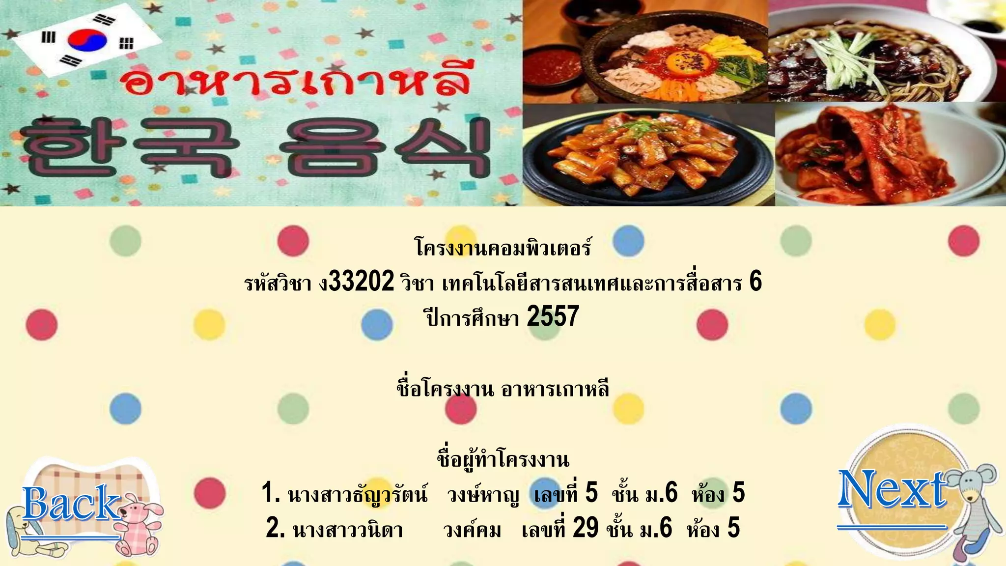 โครงร่าง โครงงานอาหารเกาหลี PPTX