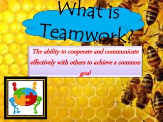 This document discusses the importance of teamwork. It notes that effective teamwork allows different departments like accounts, admin, HR, and technical teams to work collaboratively towards common organizational goals. It identifies that teamwork helps minimize costs and make processes more efficient. However, teamwork can also face limitations if not all members participate equally or if some are not true "team players". When executed well, teamwork provides benefits such as developing relationships, encouraging creativity, improving communication, creating a learning environment, optimizing resource utilization, and increasing job satisfaction. The document emphasizes that ongoing cooperation is key to achieving success through teamwork.