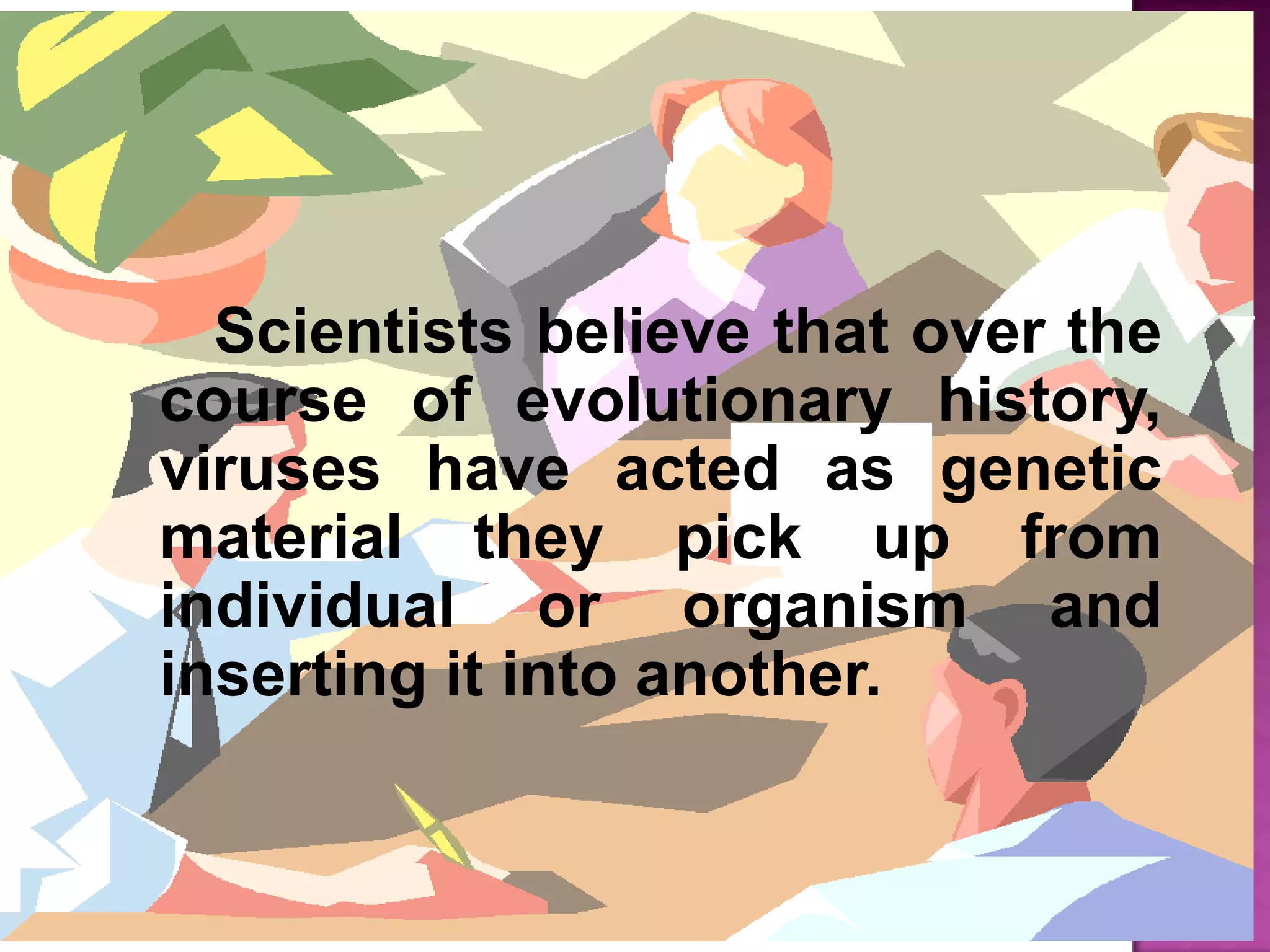 Scientists believe that viruses can transfer genetic material between organisms through a process called horizontal gene transfer. A genetically modified organism (GMO) is an organism whose genetic material has been altered using genetic engineering techniques. There are many potential advantages to GMOs including higher crop yields, reduced costs of production, and increased resistance to diseases and herbicides/insecticides. However, some people remain opposed to GMOs due to food safety or environmental concerns.
