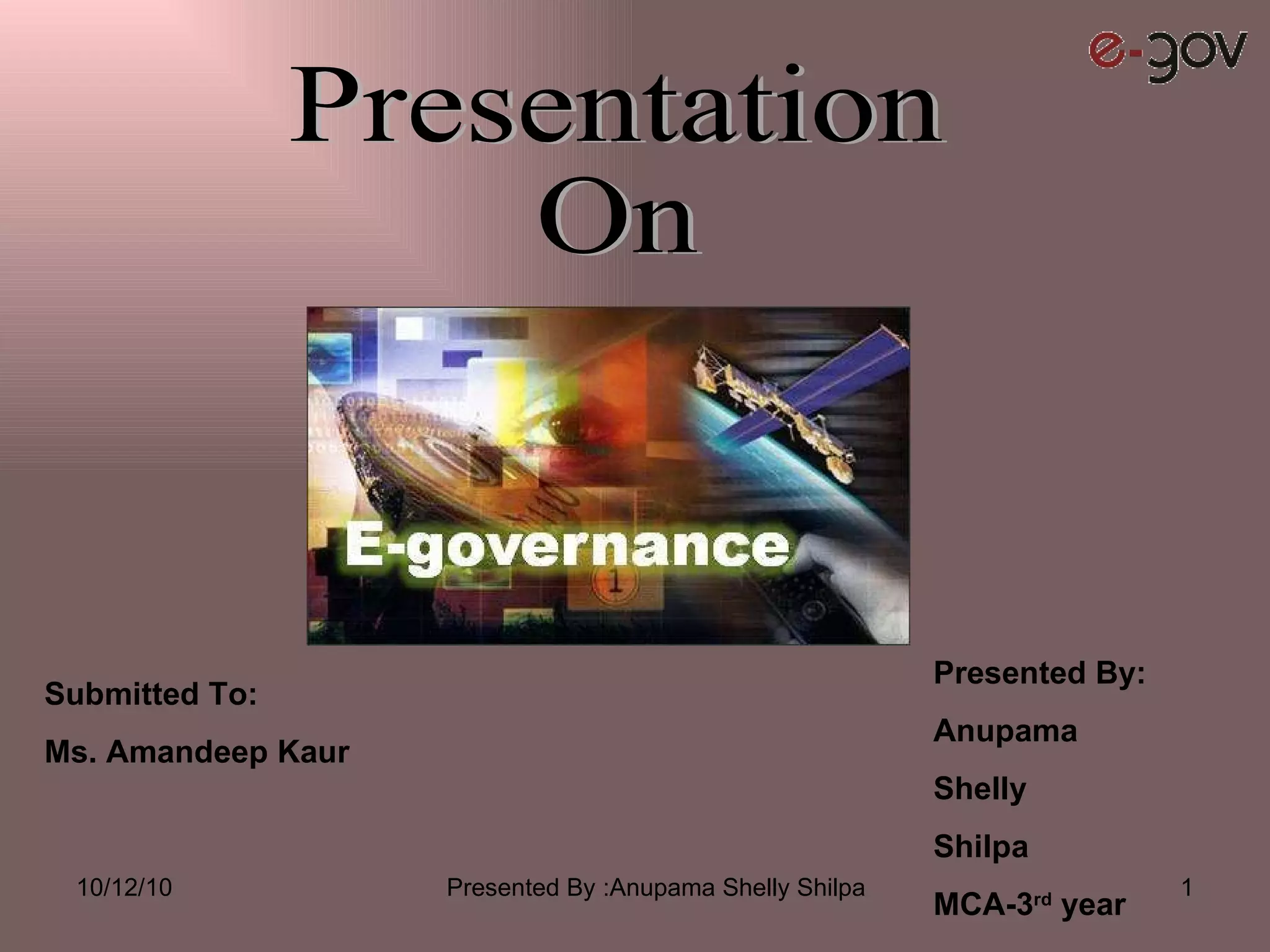 The document discusses e-governance and its components, types of interactions, benefits and challenges in India. It outlines some key Indian e-governance initiatives including customs and excise, Indian railways, CARD registration project and LOKMITRA. The relevance of e-governance to India includes transparency, public participation, public services and accountability. However, e-governance projects often face challenges such as lack of integration, key personnel and differences in languages. Most studies find that over 50% of e-government projects fail or see only partial success due to limitations in design and implementation challenges.