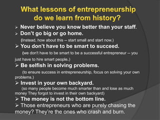 The document defines an entrepreneur as someone who recognizes opportunities through needs, wants, problems or challenges and develops people and manages resources to capitalize on those opportunities by creating a profitable business venture. It further states that entrepreneurship is the process of creating something new and valuable by devoting the necessary time and effort.