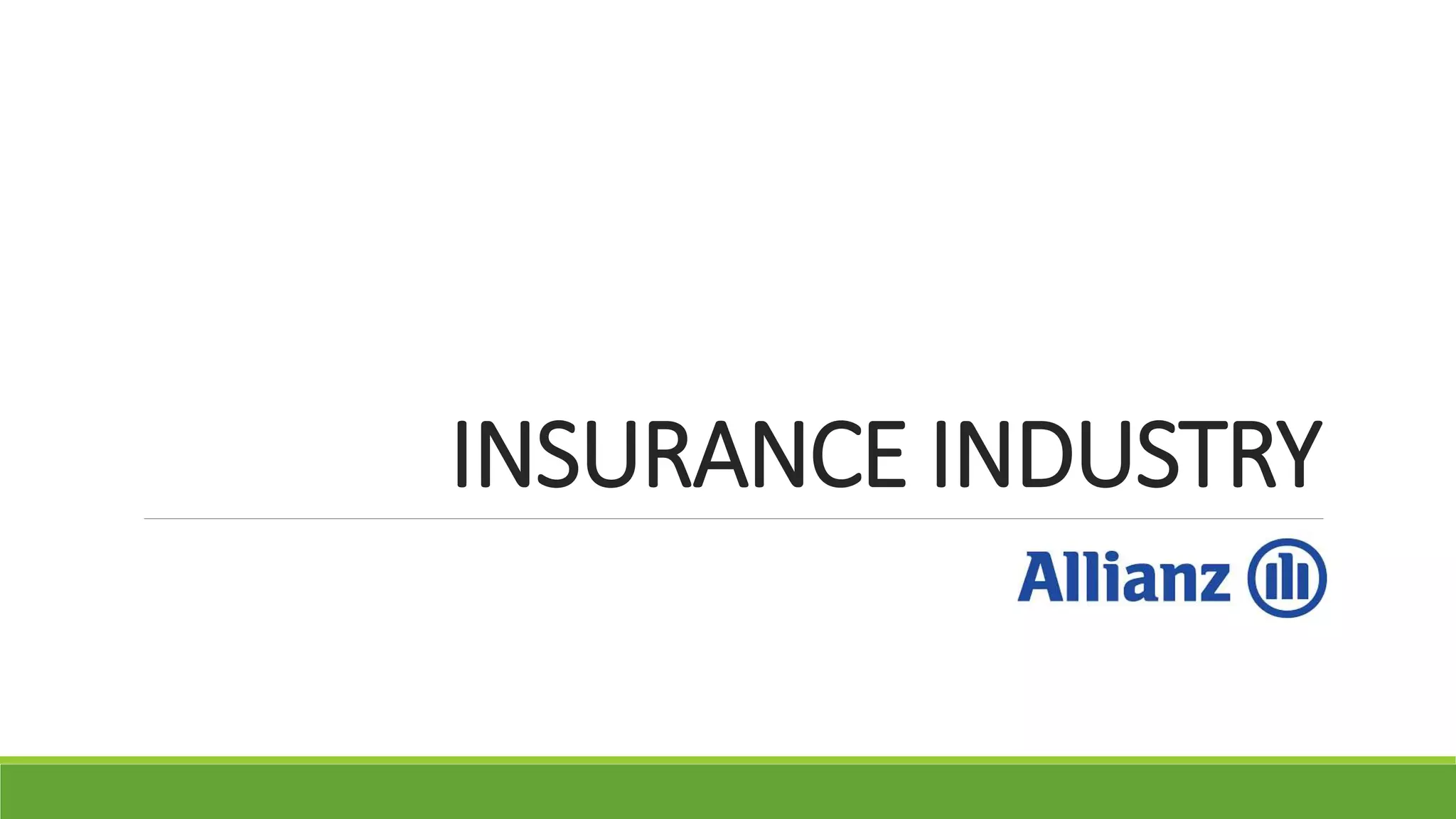 The document discusses the insurance industry and Allianz AG. It provides information on: