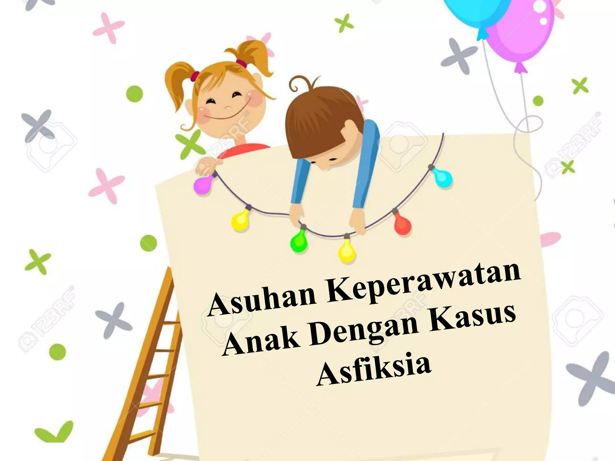 Asfiksia neonatrum adalah kondisi di mana bayi tidak dapat bernapas secara spontan setelah lahir, dengan dua klasifikasi utama: asfiksia livida dan pallida. Penyebabnya dapat berkaitan dengan berbagai faktor, termasuk penyakit ibu, kelainan tali pusat, dan komplikasi saat persalinan. Penanganan meliputi pemantauan gas darah dan oksigenasi serta perhatian terhadap reaksi bayi dan orang tua terhadap hospitalisasi.