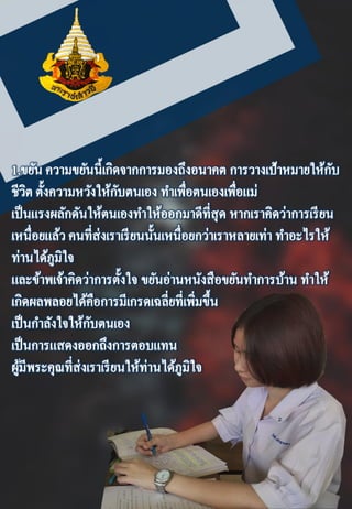 1ประวัติส่วนตัว 2ประวัติการศึกษา 3ผลการเรียน 4กิจกรรม 5คุรธรรม8ประการ