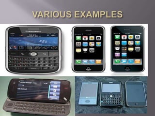 Smartphones combine basic phone functionality with computer-like capabilities such as internet access and the ability to run applications. While smartphones allow constant connectivity which can benefit communication, they may also negatively impact performance for students and workers if overused. A survey found that smartphones disrupt studying, socializing, and workplace productivity for many users. Therefore, though smartphones aim to improve connectivity, excessive personal use at school, work or social events can outweigh the benefits.
