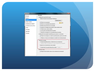 Messenger: Informació ihistorial de missatges i navegació. Historial de misstages: El messenger pot guardar automàticament les converses dins d'una carpeta de l'ordinador ( Recomanable en casos extrems . El diàleg amb el fill és molt més constructiu que la intromissió en la seva intimitat). Herramientas Opciones Mensajes Historial de mensajes