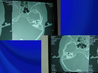 - Otitis media is inflammation of the middle ear that can be acute or chronic. It often starts as a viral upper respiratory infection and can become bacterial. Symptoms include ear pain and hearing loss. Treatment involves antibiotics and sometimes surgery.