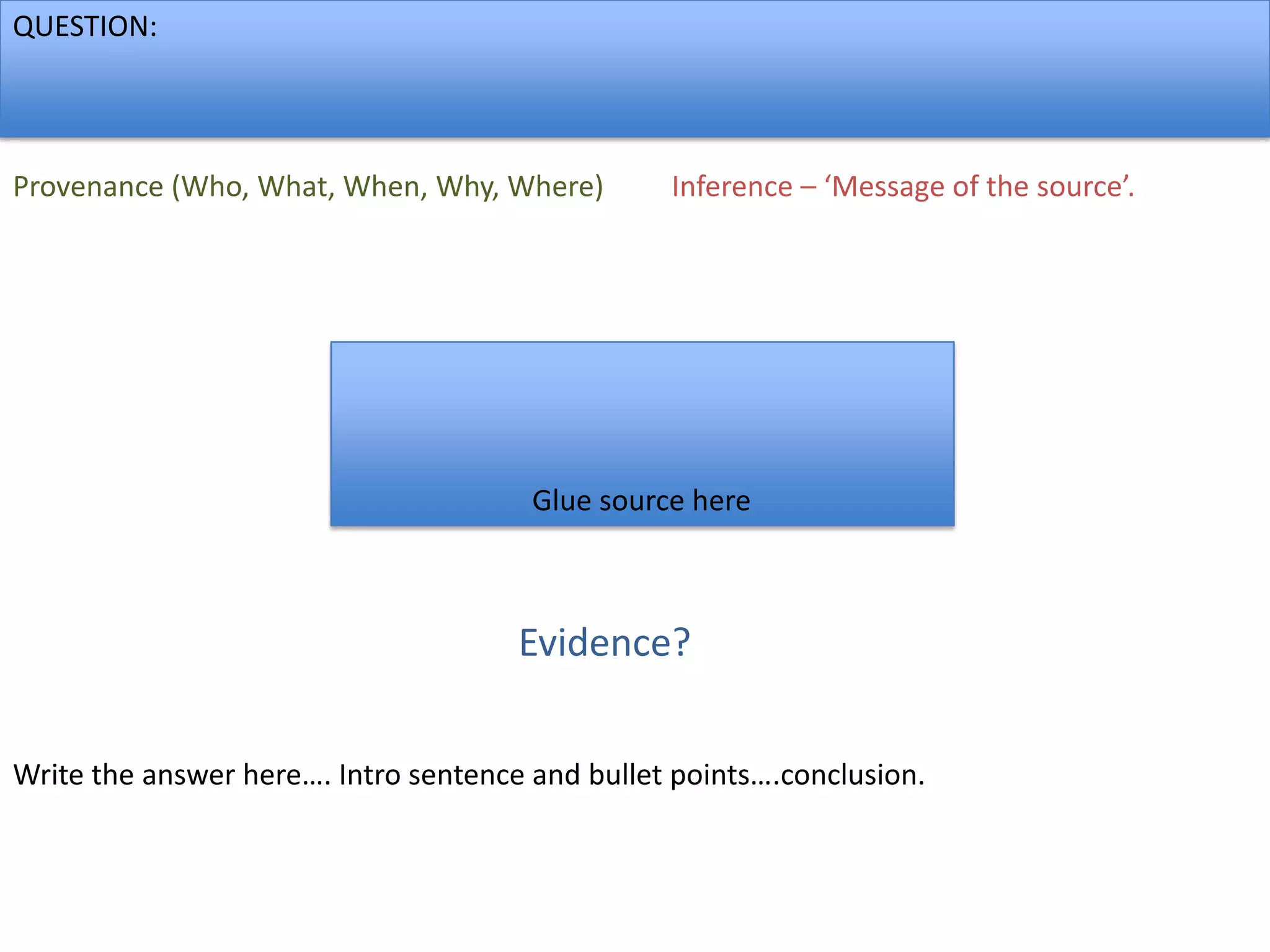 This document discusses analyzing a source to understand its message and context. It prompts the reader to consider the who, what, when, why and where of the source's provenance as well as whether evidence supports the source's message. The reader is then asked to write an answer introducing their perspective and providing bullet points of analysis before concluding.