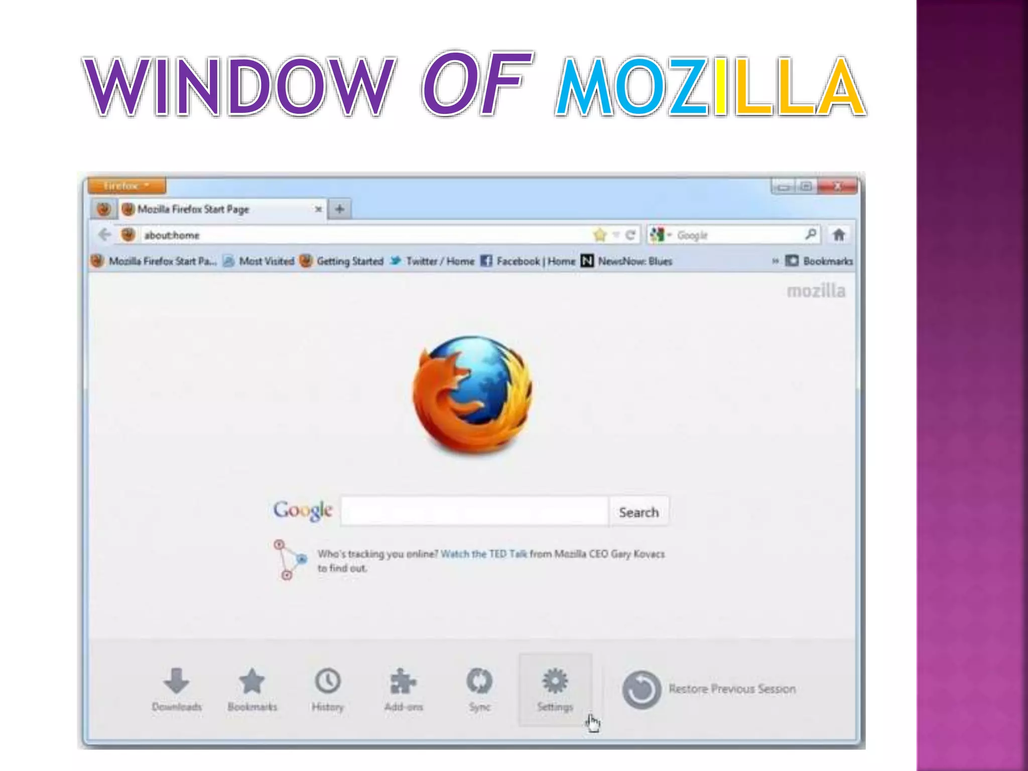 Information about Mozilla Firefox including private browsing, tabbed browsing, and performance features.