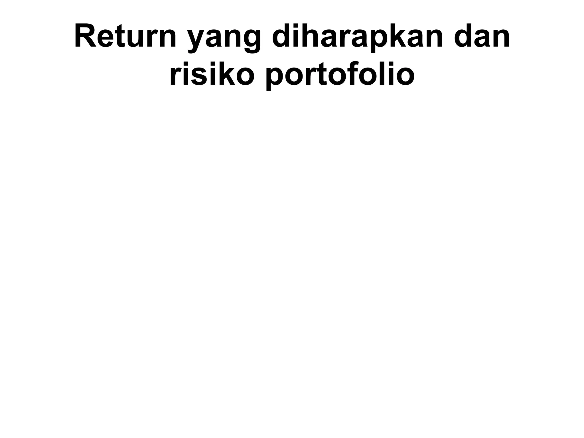 Dokumen tersebut membahas tentang return dan risiko portofolio investasi. Ia menjelaskan bahwa tujuan investor adalah memaksimalkan return dengan mempertimbangkan risiko. Return diestimasi berdasarkan return yang diharapkan dan risikonya diukur dengan variansi dan deviasi standar. Diversifikasi dapat meminimalkan risiko portofolio tanpa mengurangi returnnya.