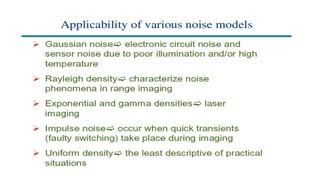 • This is characterized by noise model. So study of noise model is very important part in image processing.